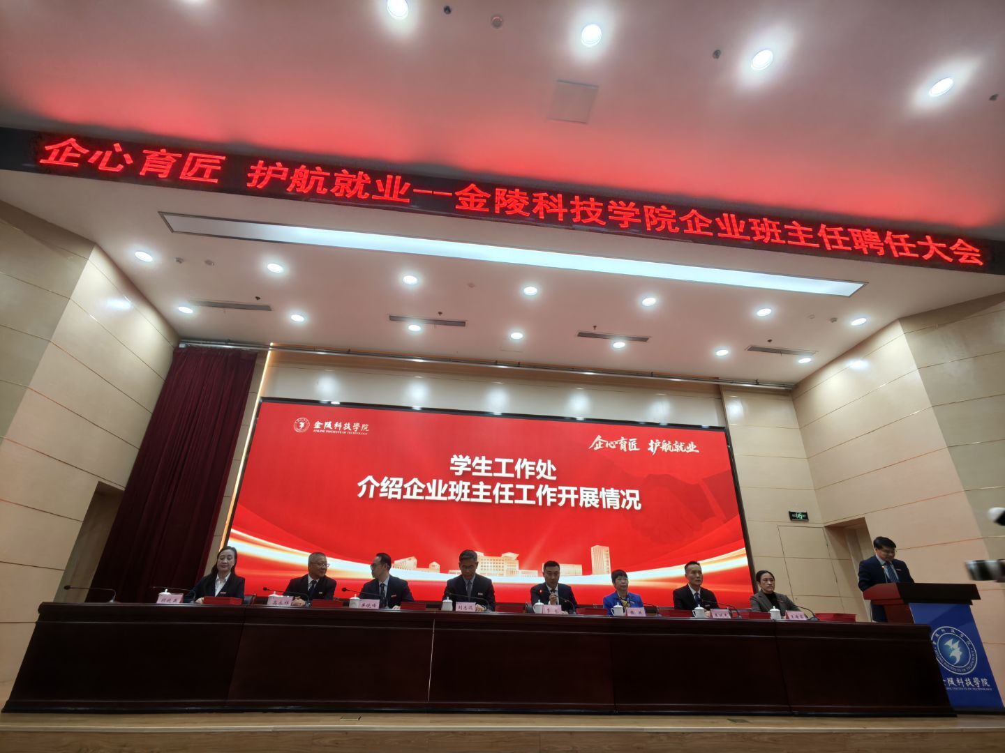 2025年11月26日,金陵科技学院企业班主任聘任大会在金陵科技学院科技楼报告厅举行。江苏PA真人视讯科技(集团)股份有限公司唐佩、徐敏博、罗涛、孙文雅同志受聘金陵科技学院软件学院企业班主任,并随后在学院组织下,参观金陵科技学院科创空间,参加学院研讨会。
